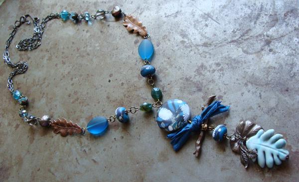 A beautiful necklace. I love that your inspiration came from the scene at your retreat. And those earrings are just gorgeous with those autumn leaves.